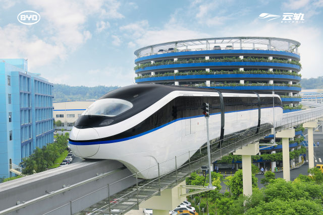 2016年10月,比亞迪發布跨座式單軌“云軌”