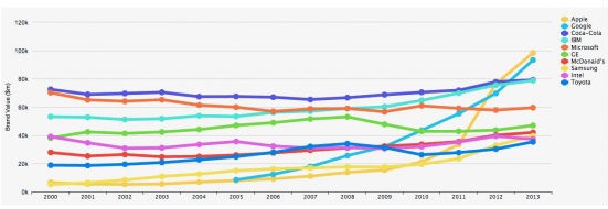 按照慣例,Interbrand公布了一年一度的全球百大品牌金榜。但與慣例非常不同的,蟬聯(lián)十三屆冠軍的可口可樂竟然被拉下王座,取而代之的是我們熟悉的,6 年前毅然拋棄Computer,改為單名一個字的品牌Apple。