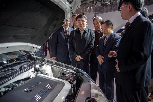 工信部部長(zhǎng)苗圩蒞臨新能源車(chē)展一汽-大眾展臺(tái)