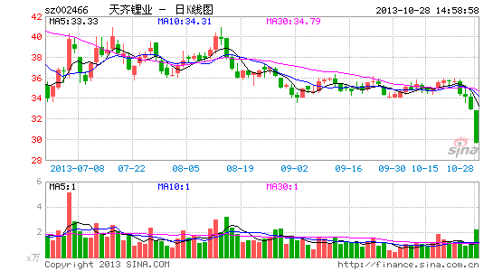 10月28日,天齊鋰業(002466.SZ)發布2013年三季報稱,2013年第三季度,公司實現營業收入1.04億元,同比略降1.17%,歸屬上市公司凈利潤-288萬元,同比下降117.85%。而綜合前三季度,2013年1-9月,公司實現營業收入2.86億元,同比下降6.72%,歸屬上市公司凈利潤443萬元,同比下降88.3%。同時,公司對于2013年全年業績也給出預測,預計2013年歸屬上市公司凈利潤區間為0-1252萬元,同比下降100%-70%。