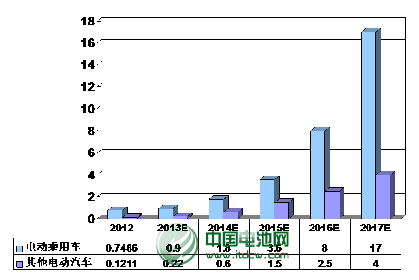 中國政府在下大力氣治理環境污染,其中的重要措施之一就是發展電動汽車,相關的政策措施(如新的采購補貼政策等)較過去有明顯進步。 我們預測: ① 2013年是過渡期,之后中國電動汽車