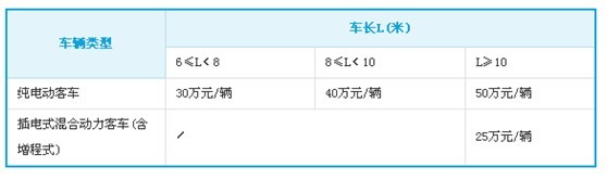 純電動客車、插電式混合動力(含增程式)客車推廣應用補助標準: