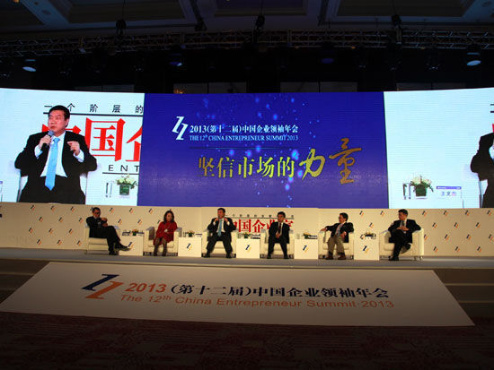 由《中國企業(yè)家》雜志社主辦的“2013中國企業(yè)領(lǐng)袖年會”于12月7日-9日在北京舉行。上圖為“主題論壇:改革永不眠”現(xiàn)場。(圖片來源:新浪財經(jīng) 梁斌 攝)