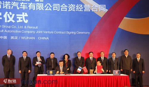 12月16日,東風(fēng)集團(tuán)和雷諾在武漢舉行東風(fēng)雷諾汽車有限公司組建合資公司簽字儀式。東風(fēng)集團(tuán)董事長(zhǎng)徐平與雷諾董事長(zhǎng)兼首席執(zhí)行官卡洛斯.戈恩(Carlos GHOSN)代表雙方公司簽署合資經(jīng)營(yíng)合同。