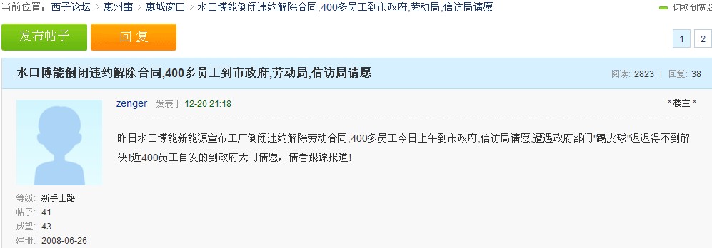 中國電池雜志-中國電池網12月30日訊(趙卓然 北京報道)今早接到網友爆料,12月19日惠州博能新能源有限公司向全體員工發布通告稱,公司自12月1日以來,已經處于無任何訂單加工的停產歇業狀態,公司已無任何收入來源,無法經營及存續下去,告知全體員工:12月20日之前將全額發放11月工資;自12月1日起,公司正式解除與全體員工的勞動關系,請大家互相轉告。