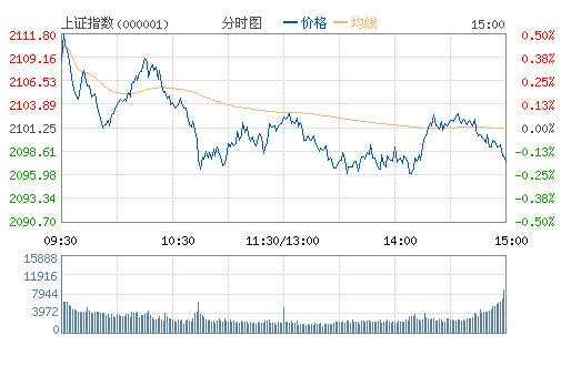 周末雖然有“新國九條”的政策暖風,但是今天兩市雙雙高開后,都在10日均線處受壓制而走低,隨后滬指圍繞2100點展開震蕩。銀行股早盤再次跌幅居前,成為拖累大盤走勢的主因,午后雖然一度想要沖擊翻紅,但是無奈依舊下挫走弱。隨著年關將至,成交量方面沒有絲毫扭轉的跡象,資金早早收兵無心戀戰。創業板繼續走勢強勁,在題材股的帶動下,再度站上1300點關口。其中,智能機器概念已經是連續多個交易日走強,成為近期盤面的一大熱門板塊。從個股情況來看,保持著較好的活躍度,其中西藏珠峰作為滬市首家披露年報公司,開盤即封漲停,年報行情的后續走勢值得關注。截至今天收盤,上證指數報收于2097.53點,下跌0.18%。深成指報收于7999.30點,下跌0.62%。創業板再度表現強勁,上漲1.06%。