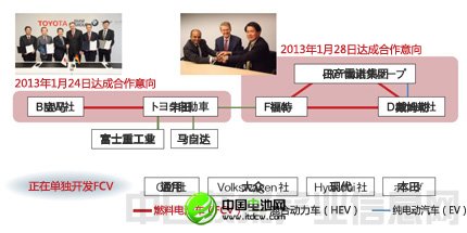 兩股勢力誕生 各廠商圍繞燃料電池車的開發紛紛于2013年1月底達成合作意向。豐田與寶馬攜手。日產雷諾集團、福特和戴姆勒組成聯盟。 |