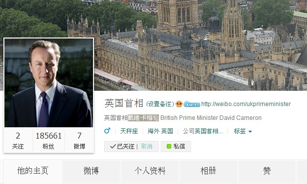 英國首相戴維·卡梅倫截止到3日9點(diǎn)一共發(fā)的7條微博:
