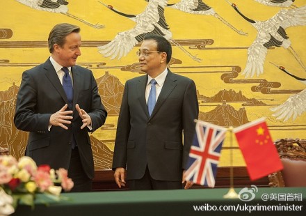 新華社報道稱,國務(wù)院總理李克強(qiáng)2日上午與英國首相卡梅倫舉行會談后,共同見證了兩國投資、科技創(chuàng)新、金融、司法、文化、衛(wèi)生等領(lǐng)域10個合作文件的簽署。卡梅倫此次率領(lǐng)迄今最大規(guī)模代表團(tuán)訪華,成員包括外交、商業(yè)、文化科技等多位部長級官員和大約150位英國各界的企業(yè)家除北京外,卡梅倫還將赴上海、成都參觀訪問,以更全面、深入地了解中國。