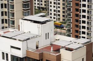“目前,我們?cè)诩屹t里、家興里、家泰里、仁盛里4個(gè)小區(qū)共92棟居民樓進(jìn)行試點(diǎn)鋪設(shè)。”邵志林對(duì)記者說(shuō),一定角度的傾斜能夠更充分地吸收光照,因此,當(dāng)初在建造小區(qū)的時(shí)候,就考慮到了房頂?shù)某兄睾推露取!疤?yáng)能電池板算上支架一塊重大約10公斤,我們都是固定在樓頂上。”邵志林介紹說(shuō)。
