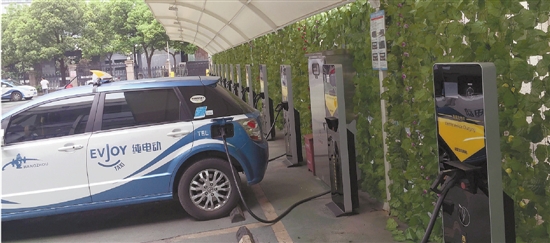 黃姑山路上的充電樁多為新能源出租車公司的車使用。