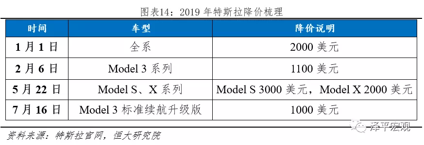 為抵御稅收減免沖擊,2019年1-7月特斯拉四次降價(jià)。以特斯拉為例,其2018年底在美國(guó)累計(jì)電動(dòng)車銷量超過(guò)20萬(wàn)輛,從2019Q1開始,其單車稅收減免從7500美元減少到3750美元;自2019Q3開始,其單車稅收減免從3750美元減少到1875美元;2020Q1稅收減免取消。為抵御稅收減免下調(diào)帶來(lái)的購(gòu)置成本增加,特斯拉分別在2019年1月、2019年2月、2019年5月、2019年7月四次降價(jià)。