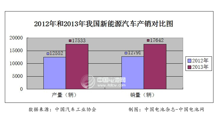 中國電池雜志-中國電池網1月14日訊(趙卓然 北京報道) 據中國汽車工業協會最新公布的數據顯示,2013年我國新能源汽車共生產1.7533萬輛,同比增長39.7%。其中,純電動汽車1.4243萬輛、插電式混合動力3290輛;新能源汽車銷售1.7642萬輛,同比增長37.9%,其中純電動汽車1.4604萬輛、插電式混合動力3038輛。