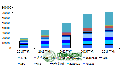 全球主要多晶硅廠商的宣稱產能(噸) 資料/中國電池網、國泰君安