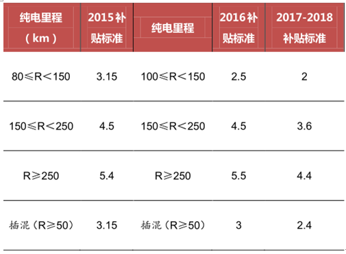新能源乘用車補貼標準 ( 2015-2018 )