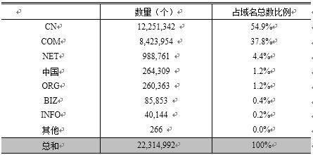 截至2015年6月,我國域名總數增至2231萬個,半年增長8.3%。其中,中國“.CN”域名總數為1225萬,半年增長10.5%,占中國域名總數比例為54.9%;“.COM”域名數量為842萬,占比為37.8%;“.中國”域名總數為26萬。