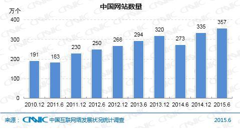截至2015年6月,中國網站 數量為357萬個,半年增長6.6%。