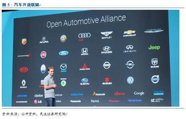 2、統一模式,類似PC時代的標準化軟硬件,車企拿來標準軟硬件,根據自己的車做深度開發,使用過程中差異只是APP和軟件,消費者可以根據喜好自主選擇。