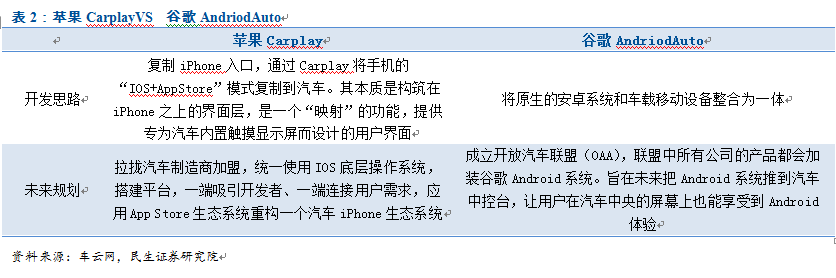 互聯網公司在車載智能領域的進軍,國外以蘋果和谷歌為代表,但兩者推出的Carplay和AndriodAuto是完全不一樣的思路。