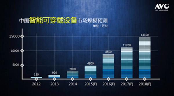 根據(jù)奧維云網(wǎng)(AVC)數(shù)據(jù)監(jiān)測顯示,智能可穿戴設(shè)備在2012年只有130萬臺(tái);2013年到2014年呈現(xiàn)爆發(fā)式增漲,市場規(guī)模分別達(dá)到920萬臺(tái)和2850萬臺(tái),增長率高達(dá)608%和210%;2015年增至4800萬臺(tái),增長77%;2017到2018進(jìn)入快速增長時(shí)期,預(yù)計(jì)到2018年銷量將達(dá)到14350萬臺(tái);