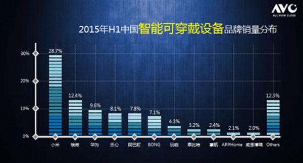 從市場參與品牌來看,2015年上半年中國智能可穿戴設(shè)備品牌銷量,小米排在第一位,占據(jù)28.7%的市場份額;得益于小米去年發(fā)布的智能手環(huán),價(jià)格很低,被瘋狂搶購。像華為、三星和蘋果等手機(jī)廠商也積極布局智能可穿戴領(lǐng)域,此外,很多國內(nèi)新興品牌因?yàn)橘Y本注入,迅速發(fā)展搶占市場。