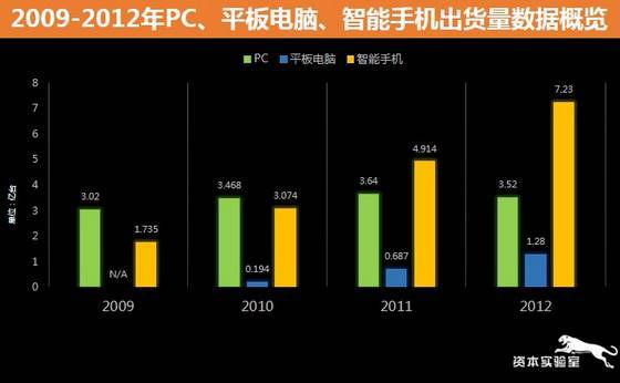 汽車從誕生至今已有130年歷史。截止2012年,全球汽車保有量超過10億輛;計算機誕生于67年前,2012全球PC出貨量達到3.52億臺;公眾互聯網誕生不到30年,到2012年全球網絡用戶數量超過24億人;智能手機在誕生后的20年間,全球用戶數量已經增長到10億人。這些數據告訴我們,科技產品特別是移動終端的增長速度快過以往任何一次工業革命帶來的用戶增長。