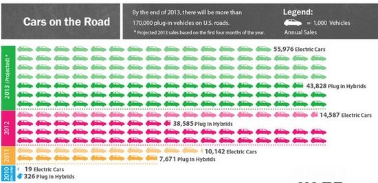 另外,Recargo根據(jù)今年前四個月全美電動汽車銷量預(yù)測,到2013年底,美國將有17萬輛電動汽車上路。盡管與傳統(tǒng)燃油汽車的數(shù)量相比不值一提,但相比2011年和2012年的電動汽車數(shù)量,這樣的增長速度非常迅猛,其中又以純電動汽車的增長最為顯著。