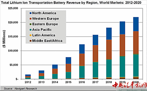 Navigant公司表示,雖然鋰電池已經(jīng)被廣泛應用,但仍處于起步階段,隨著化學物質(zhì)成本、能力密度、性能及安全的改善,以及大規(guī)模效應,鋰電池的全球需求“將會爆炸”。