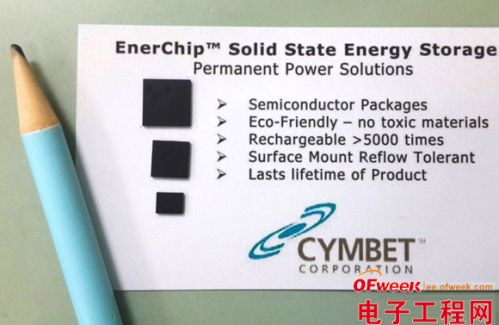 Cymbet的EnerChip固態智能電池(SSB)適合于那些需要電池后備電源的應用,以便在電源故障時仍能保持微控制器存儲器、實時時鐘和靜態隨機存取存儲器(SRAM)的設置。EnerChip器件可根據系統的待機電流需求,能夠提供從幾個小時到幾周的備用電源。可充電EnerChips是能量捕獲供電微電子系統理想的存儲設備。Cymbet EnerChip固態電池的商用產品形態可以是裸片形式或者標準的塑料芯片封裝器件。
