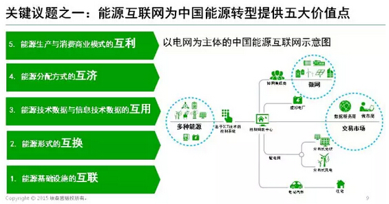 第一,能源基礎設施的“互聯(lián)”。通過電網或通過電動汽車,從上游的油氣和發(fā)電到終端消費者,把每個企業(yè)、每個商戶、每個居民用戶連接起來。
