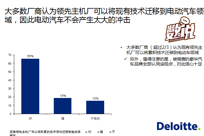 1、大多數廠商認為領先主機廠可以將現有技術遷移到電動汽車領域,因此電動汽車不會產生太大的沖擊。
