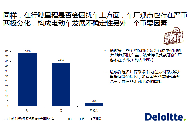 4、同樣,在行駛里程是否會困擾車主方面,車廠觀點也存在嚴重兩極分化,構成電動車發展不確定性另外一個重要因素。