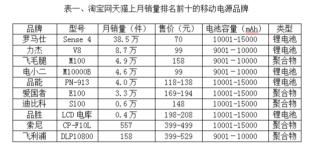 (數(shù)據(jù)來源:截至12月3日天貓上各移動(dòng)電源品牌月銷量 大智慧通訊社 汪家紅統(tǒng)計(jì))