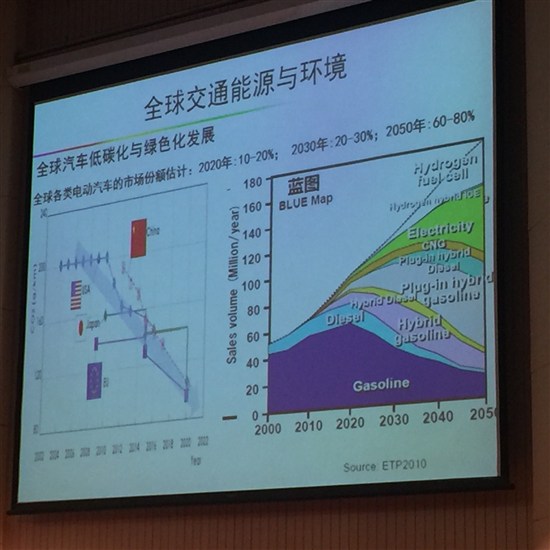 歐陽明高認為,中國的新能源發展有自己的特點,需要在三個方向重點發力,一是形成小型電動車的特色,以此作為國民車;二是形成全電型插電式汽車特色;三是形成電電混合的燃料電池特色。