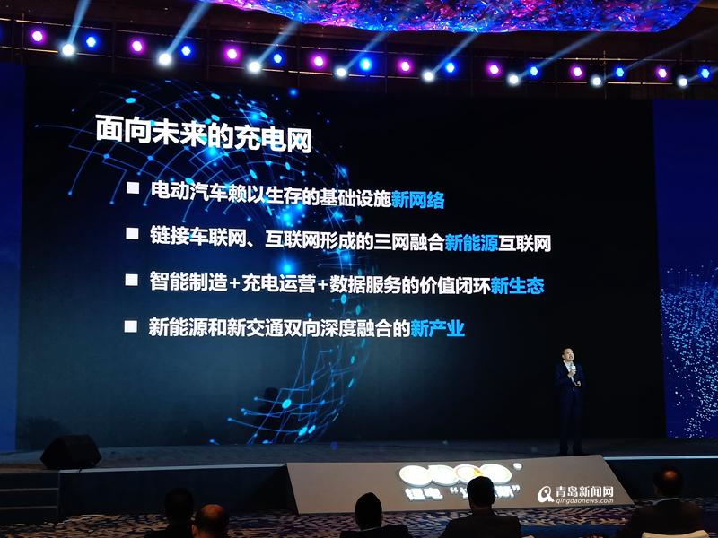 特銳德董事長于德翔介紹“面向未來的充電網(wǎng)”概念。