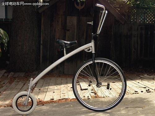 Mini-Penny出身于加利福尼亞修理企業(yè)Krank-Boom-Clank,作為Hennepin Crawler(譯注:另一款極具創(chuàng)意的DIY自行車)的制造者,該企業(yè)志在打造“異想天開的運(yùn)動(dòng)型交通工具”。Mini-Penny是一款前輪大后輪小老式腳踏車的縮小版。這種前輪大后輪小腳踏車于1870年發(fā)明,最初開始流行是因?yàn)椋涸谀莻€(gè)鏈條傳動(dòng)自行車還未出現(xiàn)的年代,踏板可以直接附著在標(biāo)志性的大前輪中心,這增加了騎車者的踏板動(dòng)力,比之前的自行車效率更高。不過,隨著安全自行車的出現(xiàn),這種車子只流行了大約20年。而這款擁有鏈條和扣齒輪的新型Mini-Penny的速度與前輪大后輪小腳踏車速度不相上下,但更小的車輪使之騎行起來更為安全。