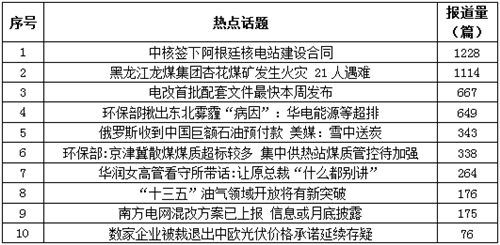 煤炭方面,黑龍江龍煤集團(tuán)杏花煤礦“11.20”重大火災(zāi)事故成為核心話題。在煤炭企業(yè)普遍艱難求生的關(guān)鍵時期,安全生產(chǎn)話題可能引發(fā)的輿論風(fēng)險(xiǎn)值得企業(yè)重視。此外,環(huán)保部稱京津冀散煤煤質(zhì)超標(biāo)較多、煤炭市場仍供大于求、我國煤炭消費(fèi)量出現(xiàn)放緩態(tài)勢、中煤協(xié)稱正在抓緊研究煤炭產(chǎn)能退出機(jī)制等消息也受到關(guān)注。