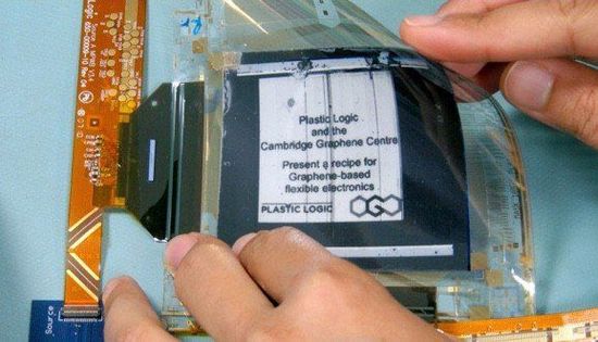 最近,Plastic Logic公司和劍橋大學(xué)開發(fā)出了首款基于石墨烯的柔性顯示屏,它看起來跟電子閱讀器的顯示屏有些相似。2015年,研究人員的目標(biāo)是利用目前的研究發(fā)現(xiàn)生產(chǎn)出全彩色OLED柔性石墨烯顯示屏。