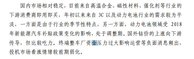 最后,我們再看一份來自生產(chǎn)企業(yè)的報告,金川集團(tuán)本月初對鈷市的評論,似乎比研究機(jī)構(gòu)要謹(jǐn)慎,主要內(nèi)容為: