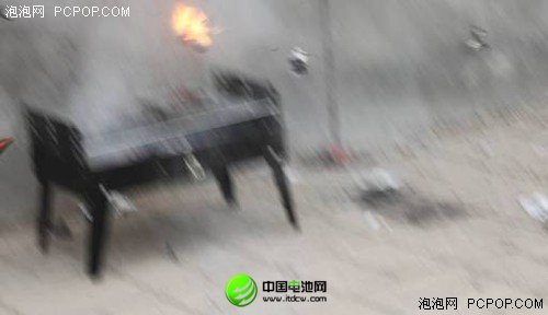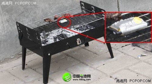 由于有了KINGMAX電池的先例,我們對后果預估過于樂觀。有說有笑的看著越來越鼓的電池,就在負責計時的伙伴喊著“現在是6分20秒”話音未落之時,“砰”的一聲巨響,電池化為一團火球騰空飛起,這突如其來的響聲震得攝像大哥險些把相機扔到烤爐上……“跟放二踢腳似的”大家異口同聲的感嘆道,相信此等威力用來當做傷人兇器是一定可以的。戰戰兢兢之中,大家在距離烤爐將近兩米的地方發現了電池的殘骸,以及同樣被炸飛的烤肉。
