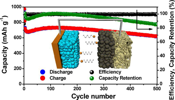 該鋰硫電池研發團隊將研究成果發表在了美國化學會的納米快報(Nano Letters)雜志上,在該文章中研發人員詳細介紹了該鋰硫電池所具有一系列性能,其中就包括相當高的能量密度、優秀的充放電效率、優異的充放電循環壽命,同時在電池充放電次數達到500次電容量達到原來的85%時仍可以實現750毫安時/克-1000毫安時/克的能量密度。正是由于該全新鋰硫電池采用了全新的陽極設計以及陰極優化結構才使得該電池實現以上的先進性能。