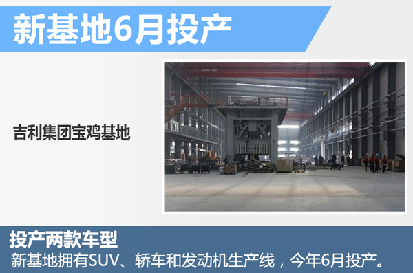吉利汽車現已在浙江臺州、寧波和湖南湘潭、山東濟南、四川成都等地建有汽車整車和動力總成制造基地,今年吉利集團寶雞基地也將正式投產,將建成SUV、轎車和發動機生產線,吉利全新SUV車型博越則在該工廠投產。按照規劃,寶雞基地生產線將在今年3月份調試完成,在6月實現首臺車下線。除此之外,吉利與沃爾沃共同研發的1.5T發動機項目也即將在寶雞開工建設,規劃年產能為36萬臺,建設周期30個月。