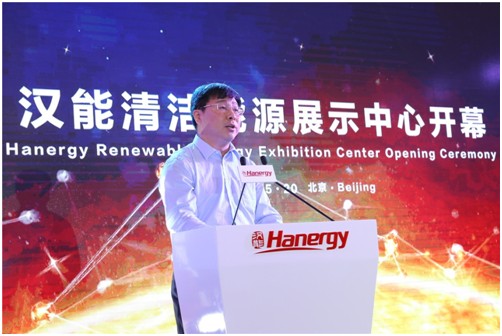 漢能控股集團董事局主席李河君在清潔能源展示中心開館儀式上發言