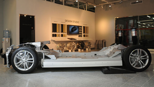 Tesla Model S電池板與車架融為一體的設計 特斯拉已經和豐田、戴姆勒等廠商在電動車領域進行合作,包括為smart、奔馳A級、奔馳B級等車型電動版提供電池動