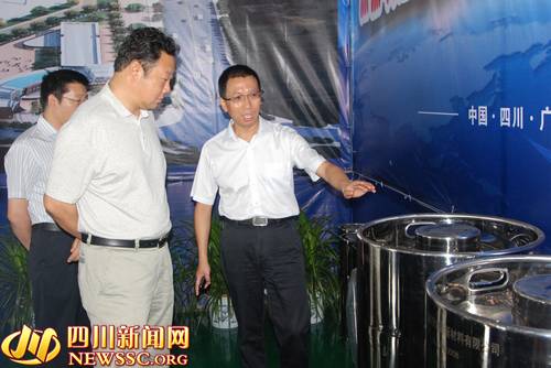廣漢市委書記毛君甫向副省長曲木史哈等領導介紹項目情況