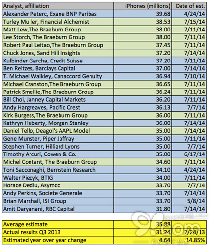 Fortune 網站統計了來自26位分析師的預測,銷量也從3180萬只4000萬不等,不過分析師們的平均銷量預測為3588萬。
