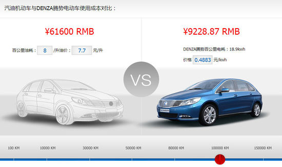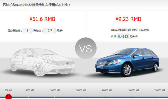 以一臺百公里耗油8L的汽油車為例,目前的平均油價暫定7.7元(93號),那么百公里的使用費用上,汽油車為61.6元,而騰勢則為9.23元,但到了10萬公里的時候,費用差異就非??捎^了,那時汽油車為6.16萬元,而騰勢才為9228.87元。由此能夠看出,購買一臺電動車它能夠獲得多大的后期實惠。