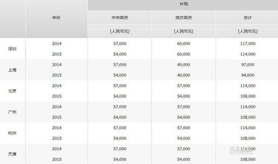結合國家新能源補貼來看,騰勢的續航里程為300公里,所以它能夠享受5.7萬元/臺的補貼標準,同時北京市還能為其提供5.7萬的補貼,合起來看,在北京它