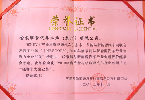 節(jié)能與新能源汽車產(chǎn)業(yè)十大年度最具影響力企業(yè)證書