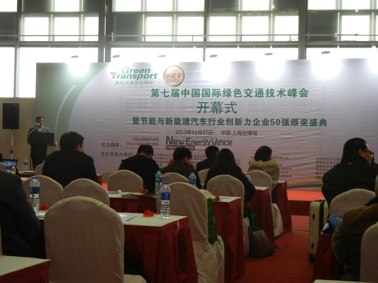 展會同期還舉辦了“2013年度新能源汽車行業(yè)創(chuàng)新能力五十強(qiáng)”評選和第七屆中國綠色交通技術(shù)國際峰會。會上許多知名企業(yè)及機(jī)構(gòu)代表做了精彩的演講:上汽集團(tuán)總工程師凌天鈞、湖南南車時代董事長申宇翔、陸地方舟戰(zhàn)略規(guī)劃部總監(jiān)劉曉靜、GE中國研發(fā)中心電力技術(shù)總監(jiān)康鵬舉、中國北方車輛研究所動力電池實(shí)驗室主任王子冬等等。